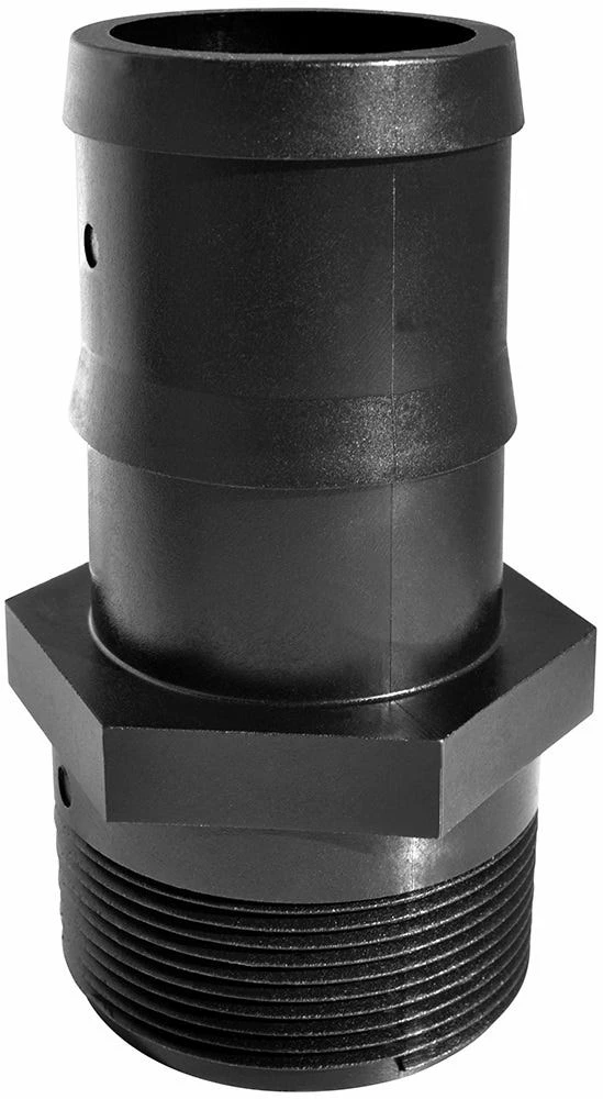Polypropylene hose barb adapter to thread connection. Use in conjuction with a hose clamp and quality thread sealant