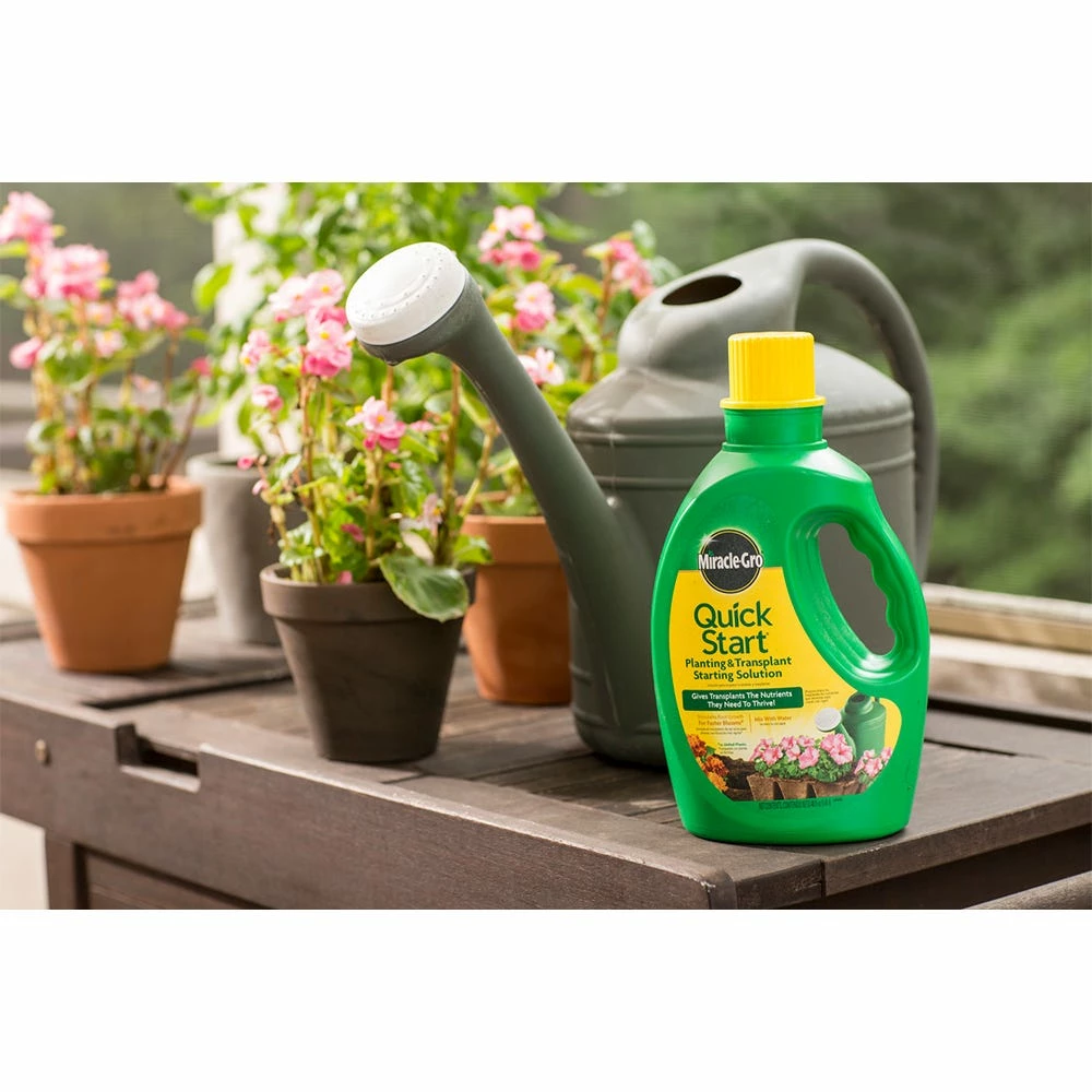 Give transplants the nutrients they need to thrive with the Miracle-Gro Quick Start Planting & Transplant Starting Solution. Simply mix the formula with water and apply to flowers, vegetables, trees, shrubs, transplants, and seedlings. The solution not only stimulates root growth for faster blooms compared to unfed plants, it also helps prevent transplant shock. Grow stronger plants with Miracle-Gro.