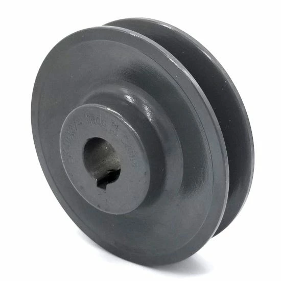 This V-Groove Drive Pulley is for use as a general purpose pulley for power transmission such as compressors, industrial fans, lawnmowers, snow blowers and electrical motors. It has a hub attached and the inside diameter is 3/4”. There are no set screw holes. This part is powder coated for long-term rust prevention.